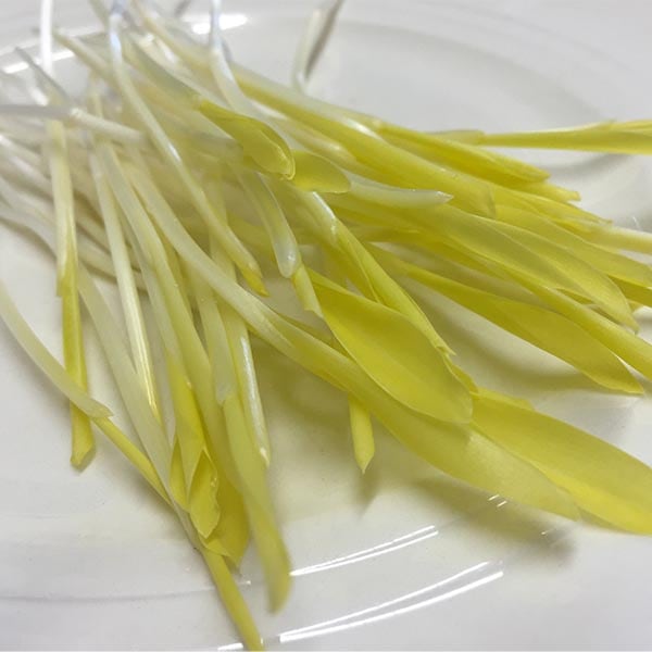 Corn Shoots (also known as popcorn shoots) are vibrant yellow and taste as good as they look. Grown in complete darkness, corn shoots have an initial bean sprout flavour followed by an eruption of incredible sweetness over a long time. Ideal used as a garnish for salads and other dishes. 6 seeds per g.