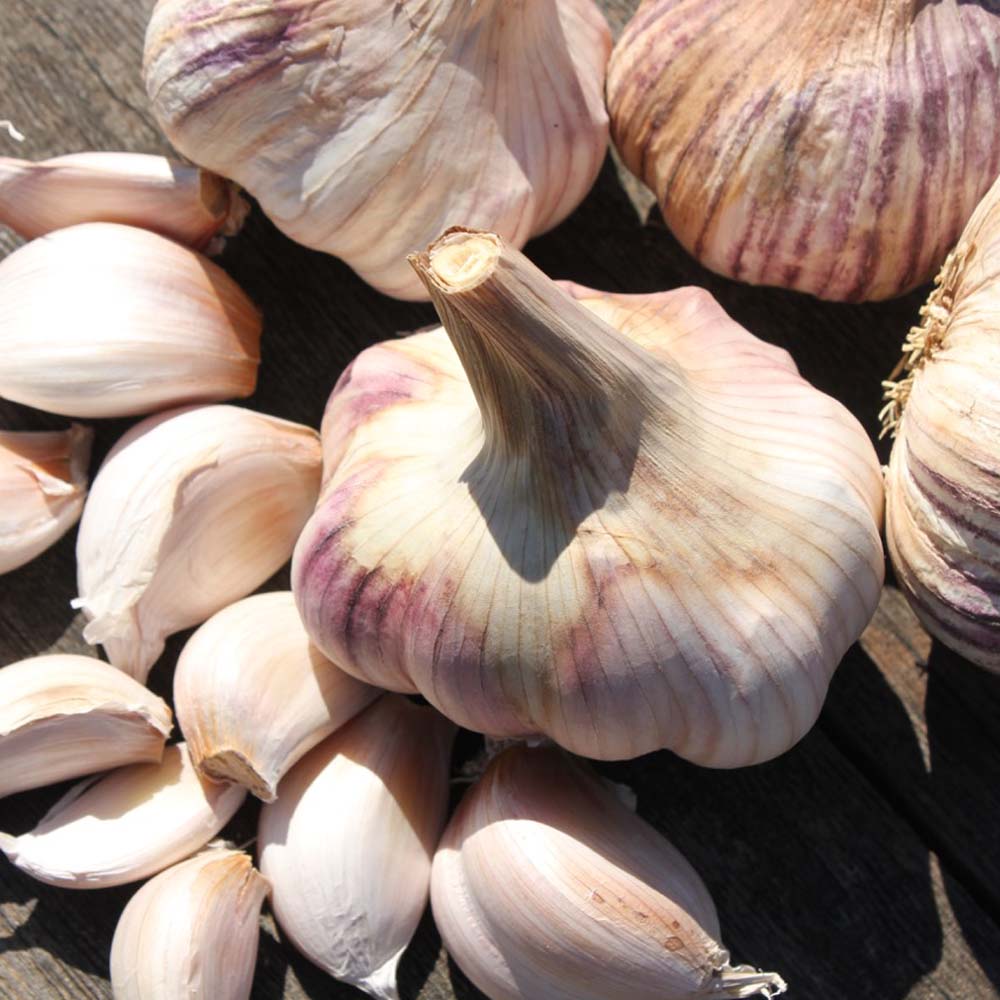 Uniformity of bulb size is satisfying for growers and this garlic delivers. With a rosy pink and white outer skin and deep pinkish cloves, this garlic has a strong flavour. Originally from northern Spain, it does well in UK conditions. Cloves: 8 - 14 cloves/bulb Expected size: 40 - 60mm Plant: September - November, Harvested: June Approx. 13 bulbs per kilo